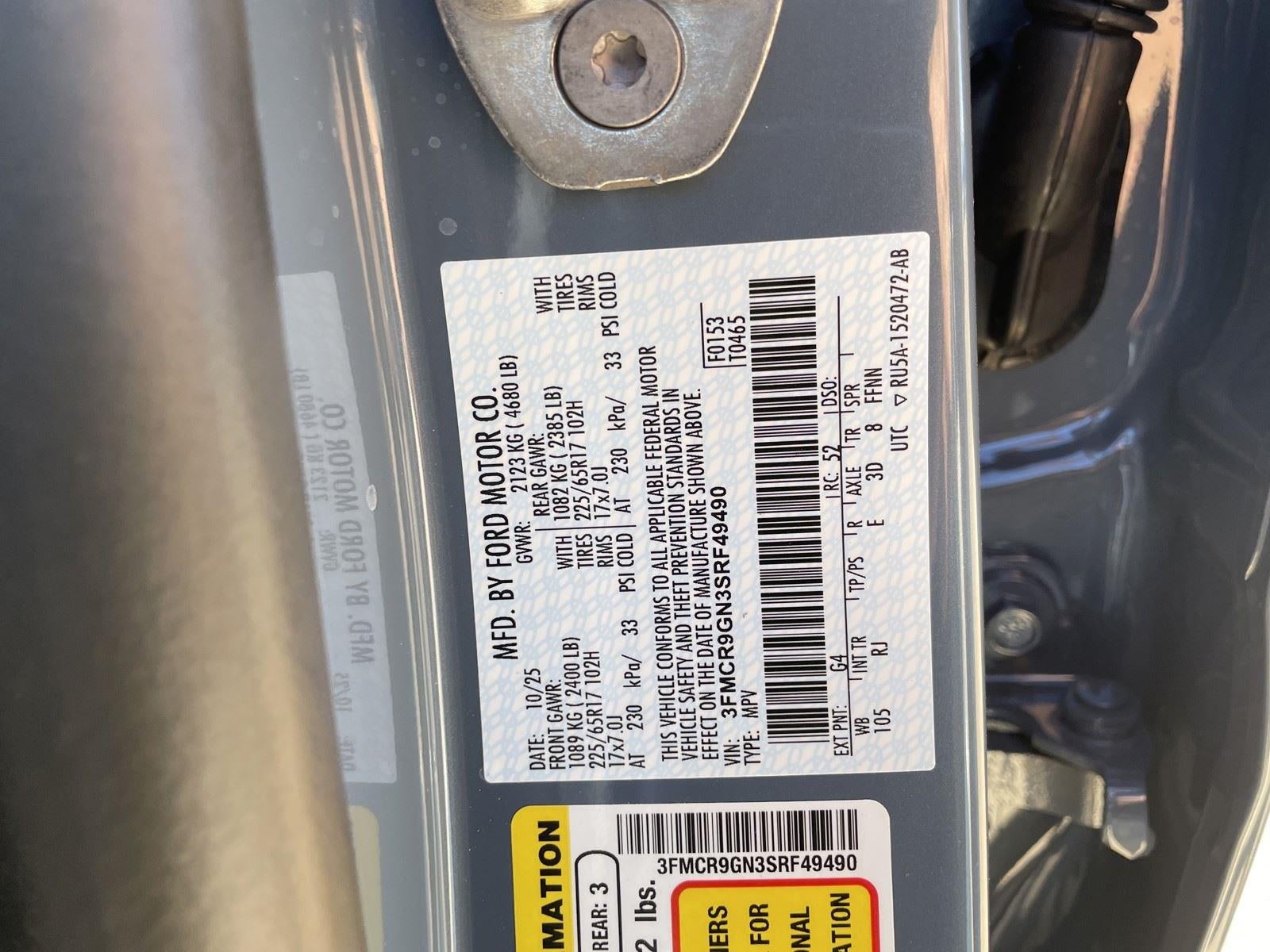 **CONVENIENCE PACKAGE** ($1,895 ADD TO MSRP), AZURE GRAY METALLIC TRI-COAT, EQUIPMENT GROUP 250A, 1.5L, 8-SPEED AUTO TRANSMISSION, 4WD, KEYLESS ENTRY, PUSH BUTTON START, REMOTE START, 13.2'' IN SCREEN DISPLAY, SYNC®4, SIRIUSXM®, FORDPASS™ CONNECT, FORD CO-PILOT360™ ASSIST+, REAR VIEW CAMERA, LED HEADLAMPS, LED TAILLAMPS, POWER HEATED MIRRORS, LIFTGATE W/ LIFTGLASS, SECURILOCK® ANTI-THEFT SYSTEM, SOS POST-CRASH ALERT SYSTEM