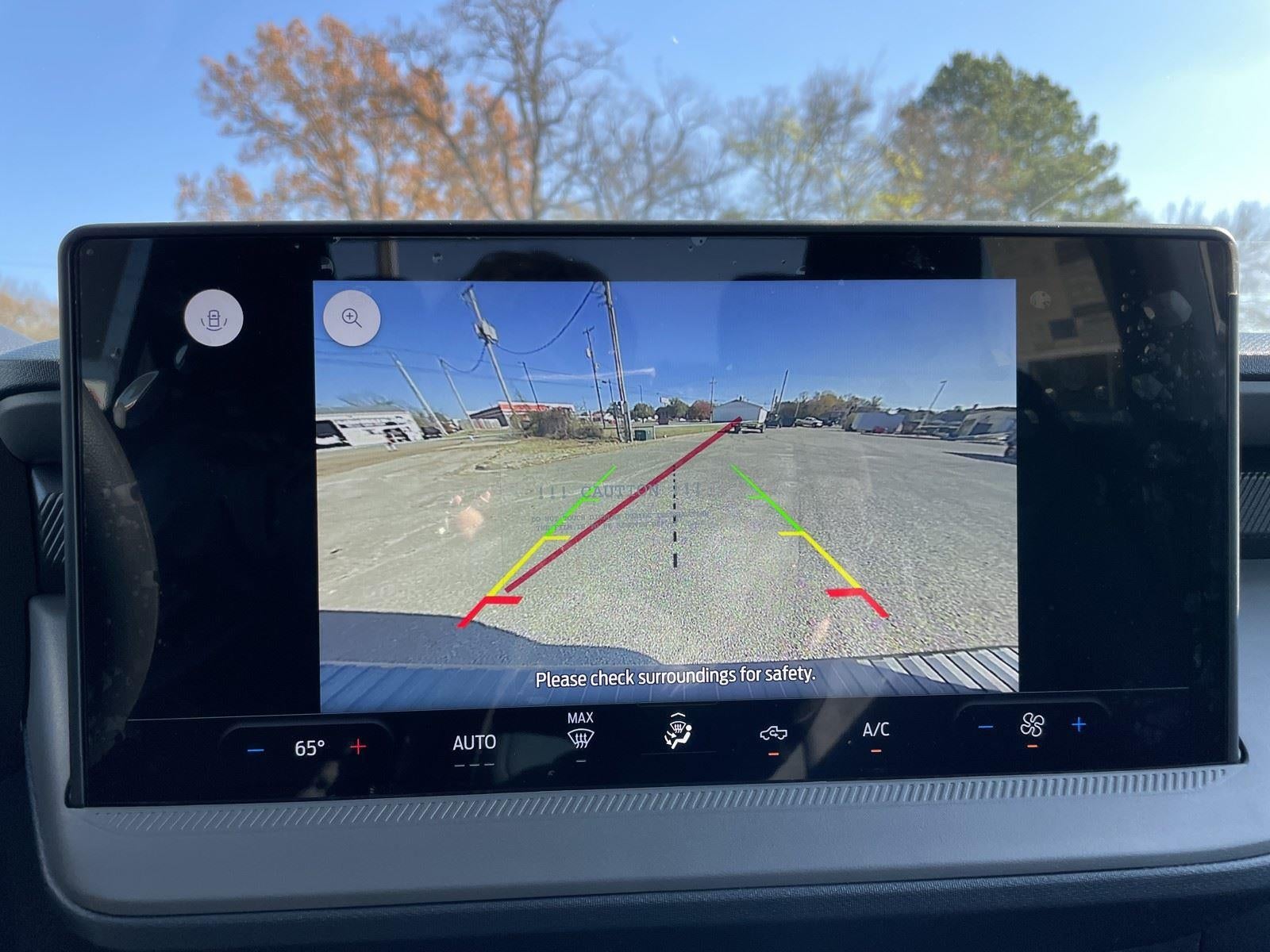 - The vehicle is equipped with a camera that displays an image of the area behind the vehicle on an interior display.