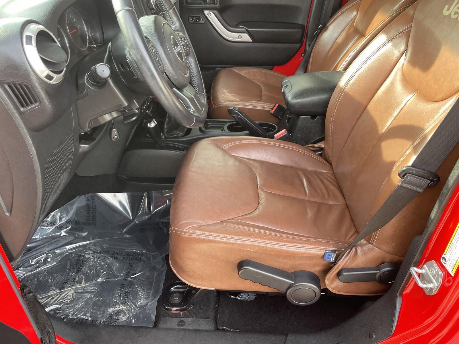 One Owner! **AMARETTO LEATHER & PREMIUM SOUND** ($2,000 ADD TO MSRP), **FREEDOM TOP® BODY-COLOR 3-PIECE HARD TOP** ($1,995 ADD TO MSRP), SAHARA PACKAGE 23G, CONNECTIVITY GROUP, 3.6-LITER V6, 6-SPEED MANUAL TRANSMISSION, 4WD, KEYLESS ENTRY, PUSH BUTTON START, REMOTE START, LEATHER, HEATED FRONT SEATS, ALPINE AUDIO SYSTEM, CRUISE CONTROL, LED FOG LAMPS, LED HEADLAMPS, HILL START ASSIST, THEFT DETERRENT SYSTEM