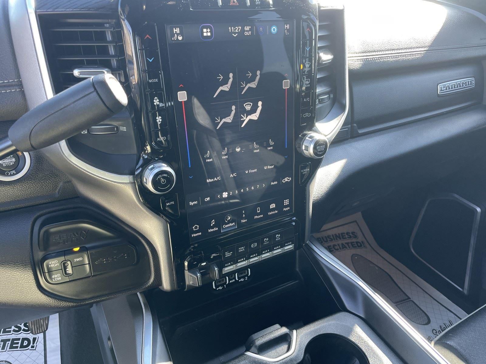 Clean Carfax! One Owner! **6.7L I6 CUMMINS HO TURBO DIESEL ENGINE** ($12,595 ADD TO MSRP), **NIGHT EDITION** ($4,040 ADD TO MSRP), **LARAMIE LEVEL 1 EQUIPMENT GROUP** ($3,840 ADD TO MSRP), **AUTOMATIC-LEVELING REAR AIR-SUSPENSION** ($1,705 ADD TO MSRP), **DUAL REAR WHEELS** ($1,495 ADD TO MSRP), CUSTOMER PREFERRED PACKAGE 21H, 5TH WHEEL / GOOSENECK TOWING PREP GROUP, 6-SPEED AUTOMATIC AISIN HD TRANSMISSION, 4WD, KEYLESS ENTRY, PUSH BUTTON START, REMOTE START, LEATHER, BUCKET SEATS, HEATED & COOLED FRONT SEATS, UCONNECT® 5, 12 IN SCREEN DISPLAY, ALPINE AUDIO SYSTEM, APPLE CARPLAY, ANDROID AUTO, Bluetooth® FOR HANDS-FREE PHONE, REAR VIEW CAMERA, CRUISE CONTROL, NAVIGATION, LED HEADLAMPS, LED FOG LAMPS, POWER ADJUSTABLE PEDALS WITH MEMORY, LED TAIL LAMPS, PARK-ASSIST, BLIND SPOT ALERT, CROSS-TRAFFIC ALERT, HILL-START ASSIST, THEFT DETERRENT SYSTEM